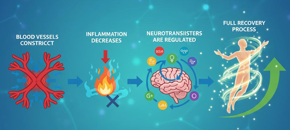 Blood vessels constrict → inflammation decreases → neurotransmitters are regulated → the body begins a full recovery process.